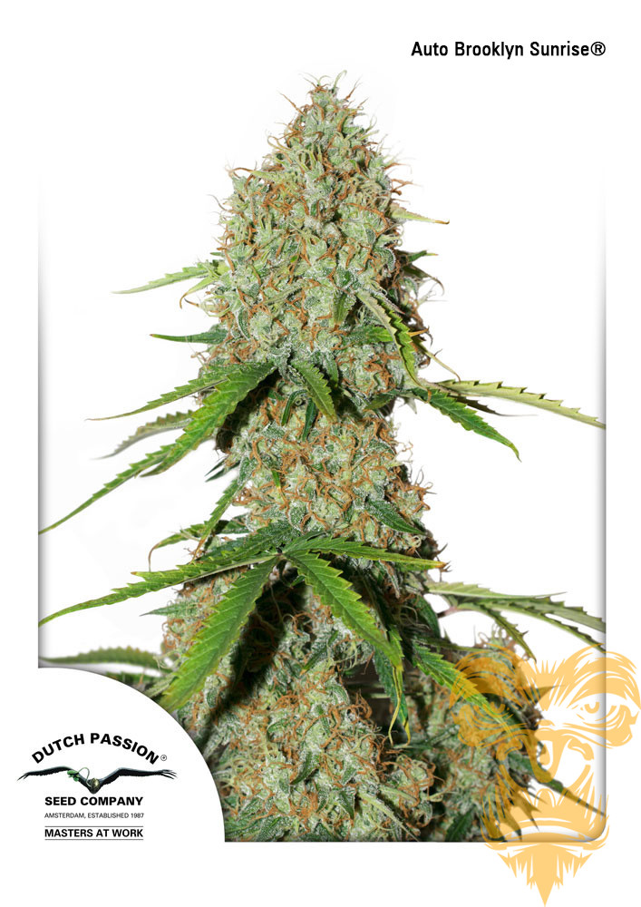 Auto Brooklyn Sunrise® combines a distinctively spicy taste with large yields of frosty top strength cannabis. The genetics come from the acclaimed USA East Coast ‘Brooklyn’ Diesel clone noted for a famously rich diesel aroma and strong high. This was combined with some connoisseur AK genetics from upper New York State and made into a feminized autoflowering variety.