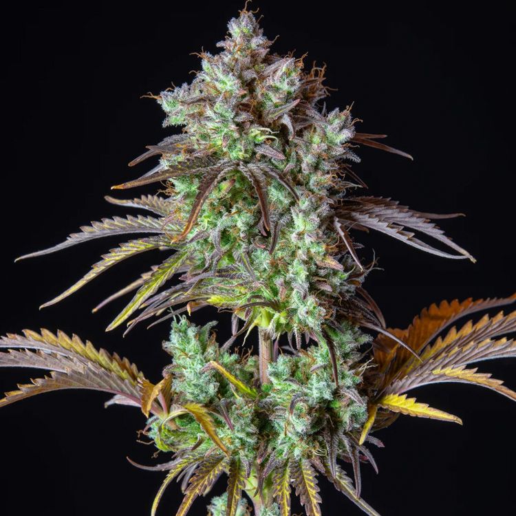 Thanks to the fine genetic mix, this strain won’t be afraid of showing its hybrid vigour and can produce up to 500gr/m2 of prime-quality buds; This large-sized variety grows really sturdy, with a solid stem and side branching that give this strain a stocky appearance while still reaching up to 120cm. The tall main stem and long side branches grow multiple flowering sites on the upper part with not too many small fan leaves with a few fingers.