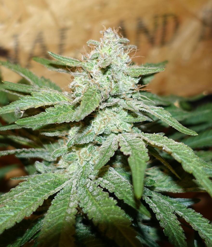 The ‘lost’ North London White Rhino clone, found and crossed with proven inbred Chem Line C4DD. quite well balanced, with the cheesy/skunky funk of the Rhino mixing well with a solvent/fuel/chemmy profile of the C4DD. Quite a strong smell. The taste is creamy/cheesy with an exhale reminiscent of moroccan hash. The high is blissful, mellow and smooth… quite couchlock with great relaxing qualities.